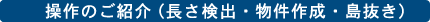 ・操作の一部分をご紹介します。 ||| 長さ検出(例) ||| 物件作成 ||| 島抜き